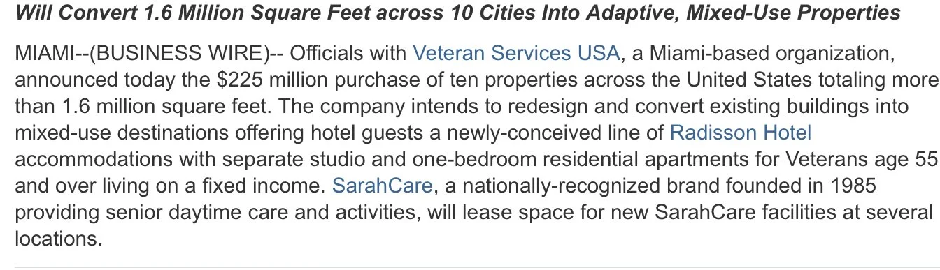 Veteran Services USA Completes $225M National Portfolio AcquisitionBusiness InsiderJuly 21, 2021Read More